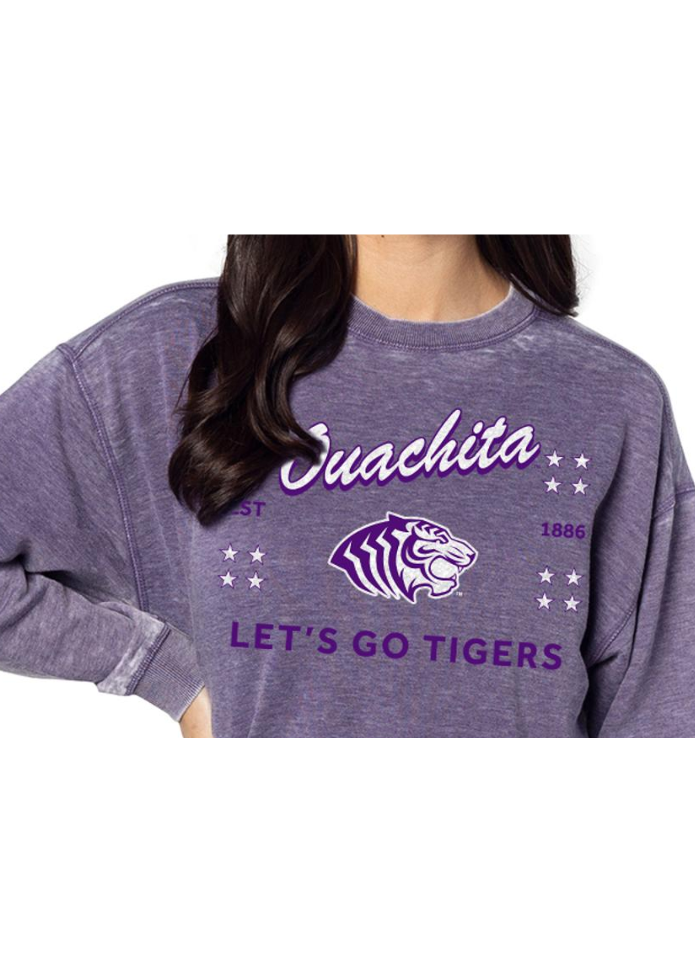 The softest, coziest Ouachita Baptist Tigers fleece you'll ever wear. Buttery soft to the touch and burnout wash treatment for an edgy take on this classic silhouette. Unisex oversized fleece sweatshirt with ribbed neckline, cuffs, hem. Dropped shoulders and relaxed bottom hemline.