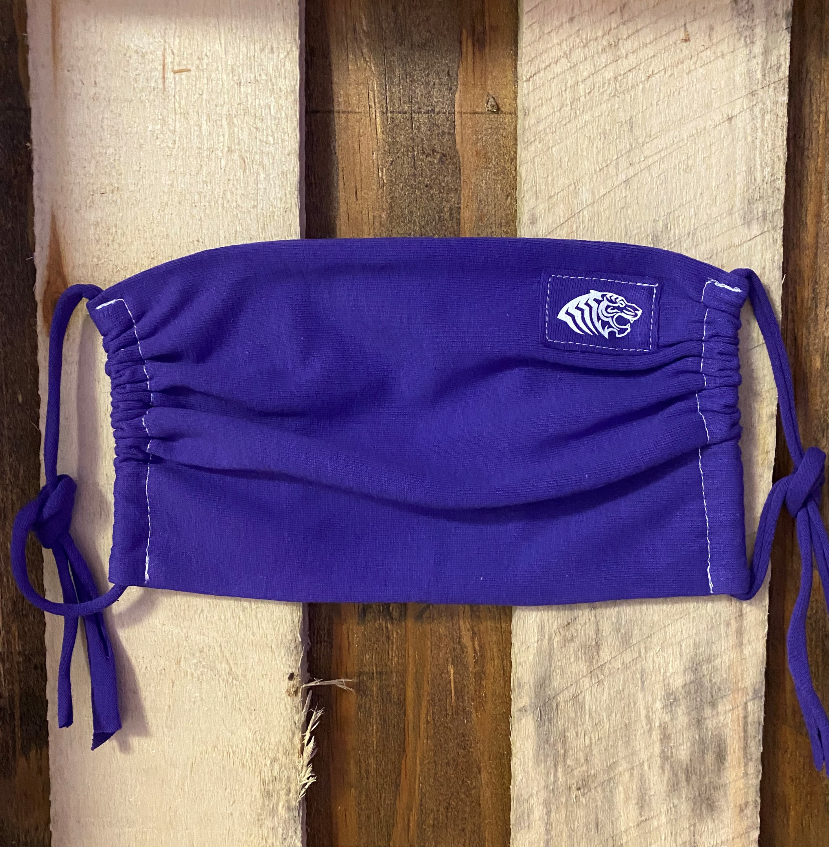 We hope to never need these on campus again, but it's always nice to have just in case! In black and purple, this face mask is in a breathable jersey material and can be tied around the head or over the ears, featuring our tiger logo patch.