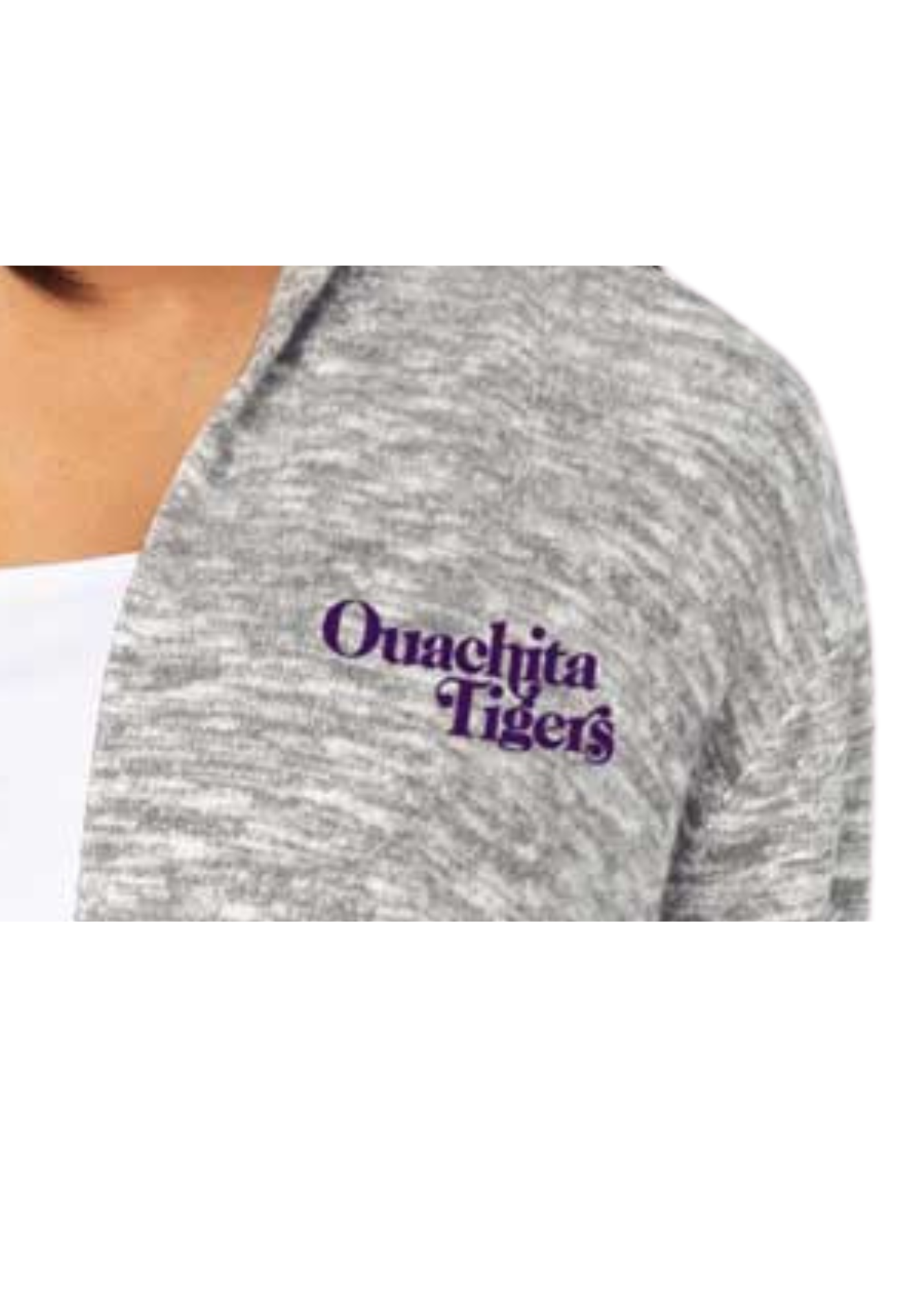 The perfect throw-on-and-go Ouachita Tigers cardigan for an easy, effortless look. Made of our softest fabric crafted from poly, viscose and spandex fibers. Features a gently draped, body-hugging fit, side pockets and rib at long sleeves.