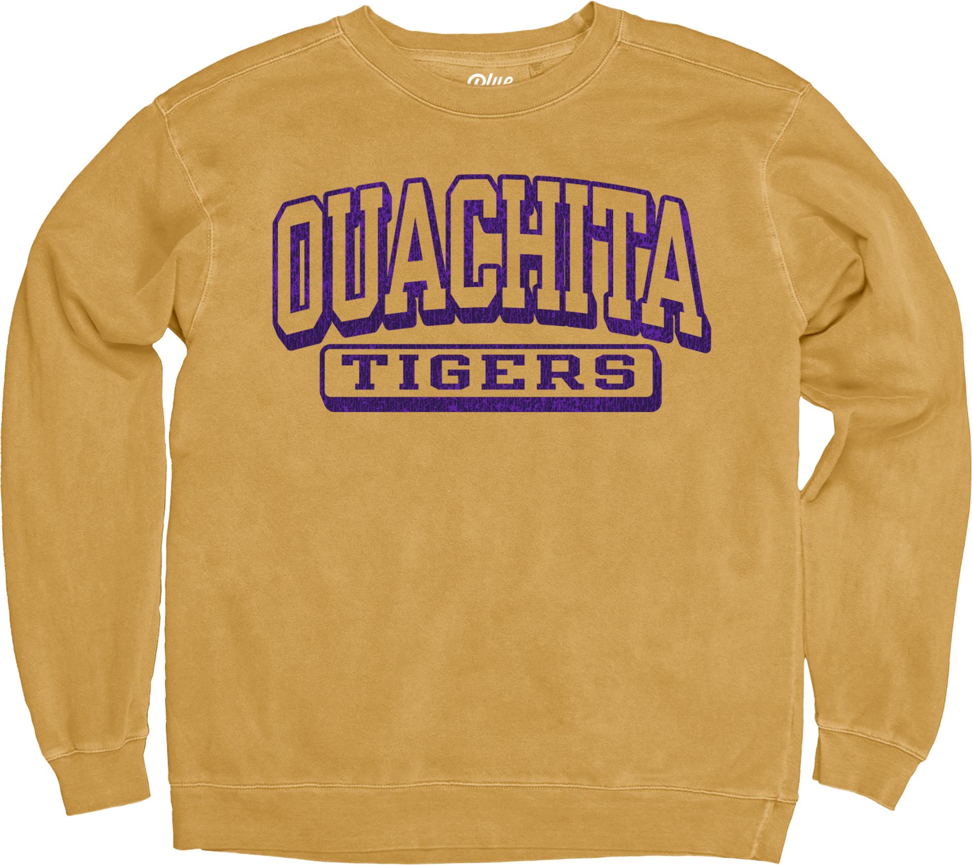 Ouachita Tigers Worn Path Infusion Dyed Ringspun Fleece Crew